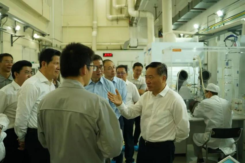 Weng Zuliang investigates the small-scale testing laboratory in the Luolong plant area